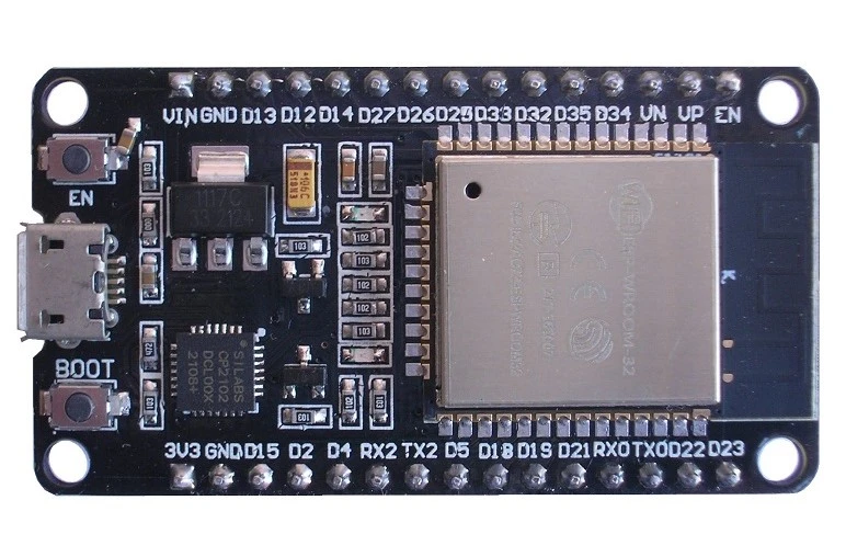 Módulo de desarrollo de 32 bits, basado en el chipset ESP32 de Espressif. Soporta comunicación WIFI, Bluetooth low energy (BLE), ADC, DAC, I2C, touch, PWM, SPI, UART, Ethernet, Host SD, lo cual permite una gran cantidad de aplicaciones.